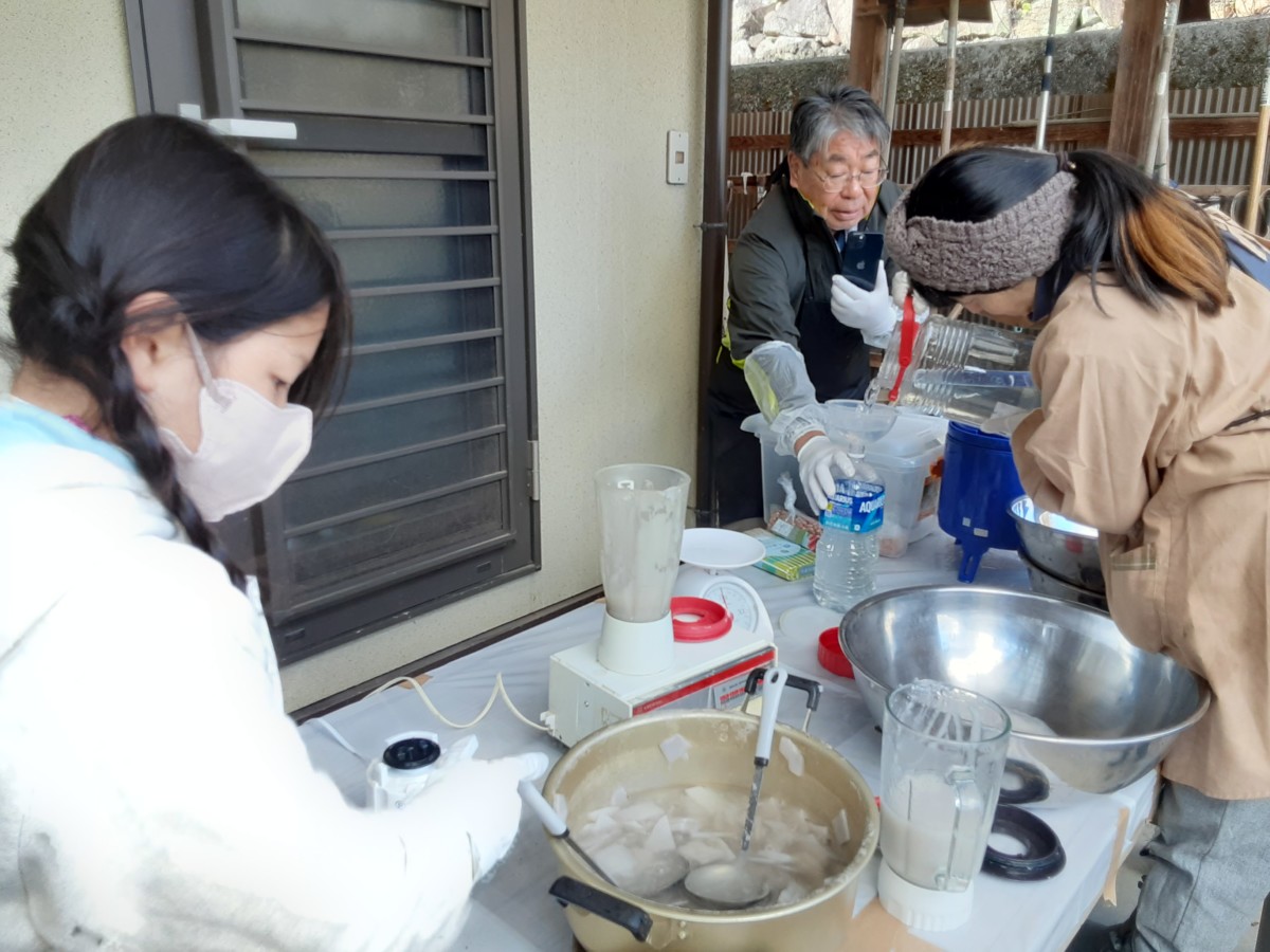 蕎麦打ちでお馴染みしげきさんにそばがらの調達、文子さんにこんにゃくづくりをお願いし、12月17日にTさんが動画を撮りながら、丁寧に教えてもらって帰られました。
