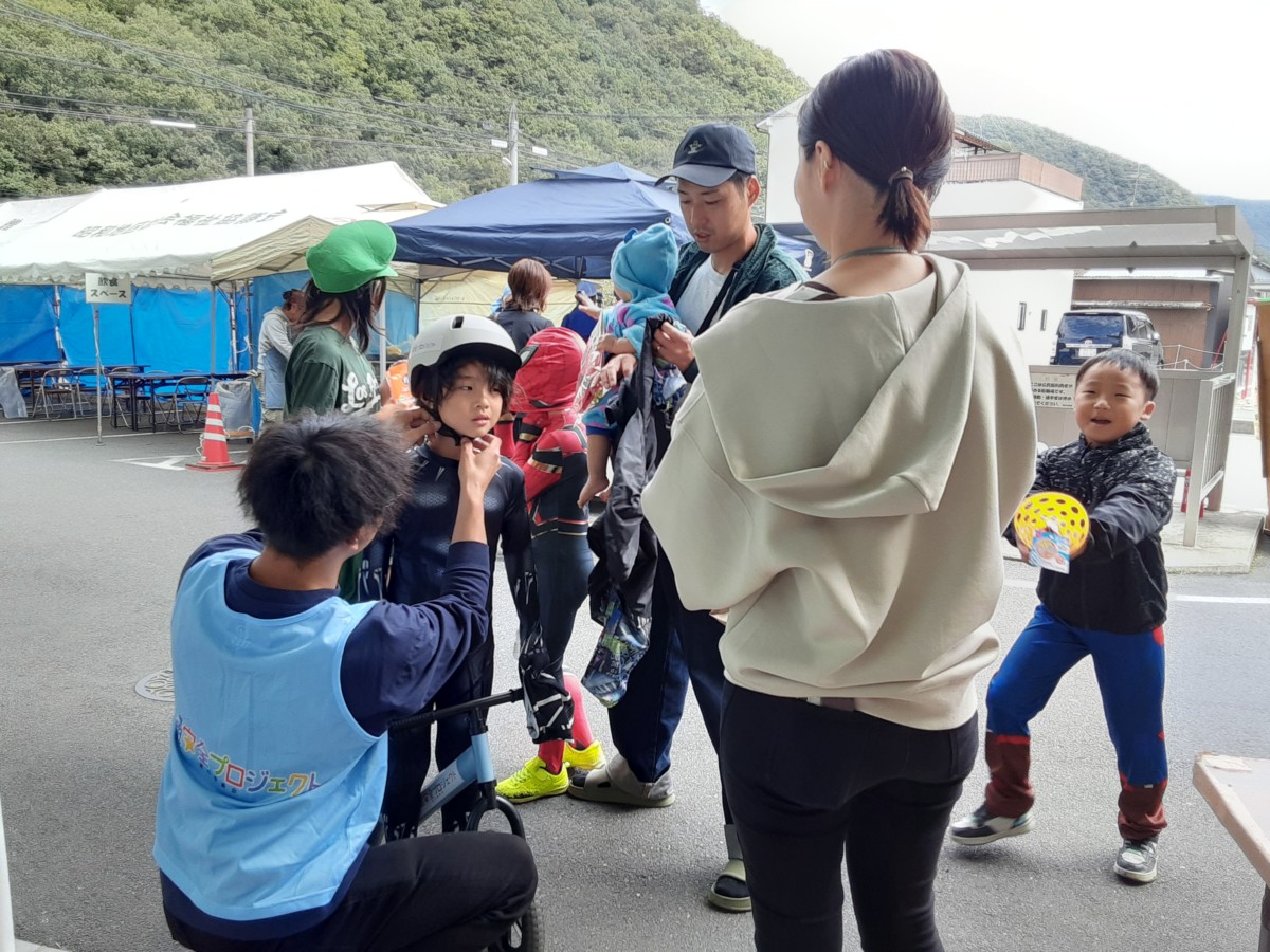 そして、総社市の「市民提案型事業」の中間報告会で知り合った「岡山ランバイク交通安全プロジェクト実行委員会」の代表が是非参加したいと言ってくださり、昭和公民館にお願いすると、事故のないようにやって下さいと了解がもらえて、ランバイクや交通安全のチラシを持って参加されました。